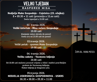 Raspored misa u Velikom tjednu i za Uskrs 2026